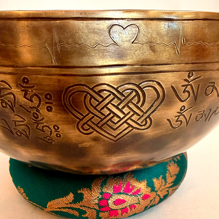 Designed for meditation, sound healing, yoga, or ceremonial use, the bowl’s heart motif adds an element of intention and emotional connection, making each session feel personal and meaningful. Lightweight and easy to hold, it responds beautifully to gentle strikes or rim-rubbing techniques, creating a calm, grounding sound that fills the space.
