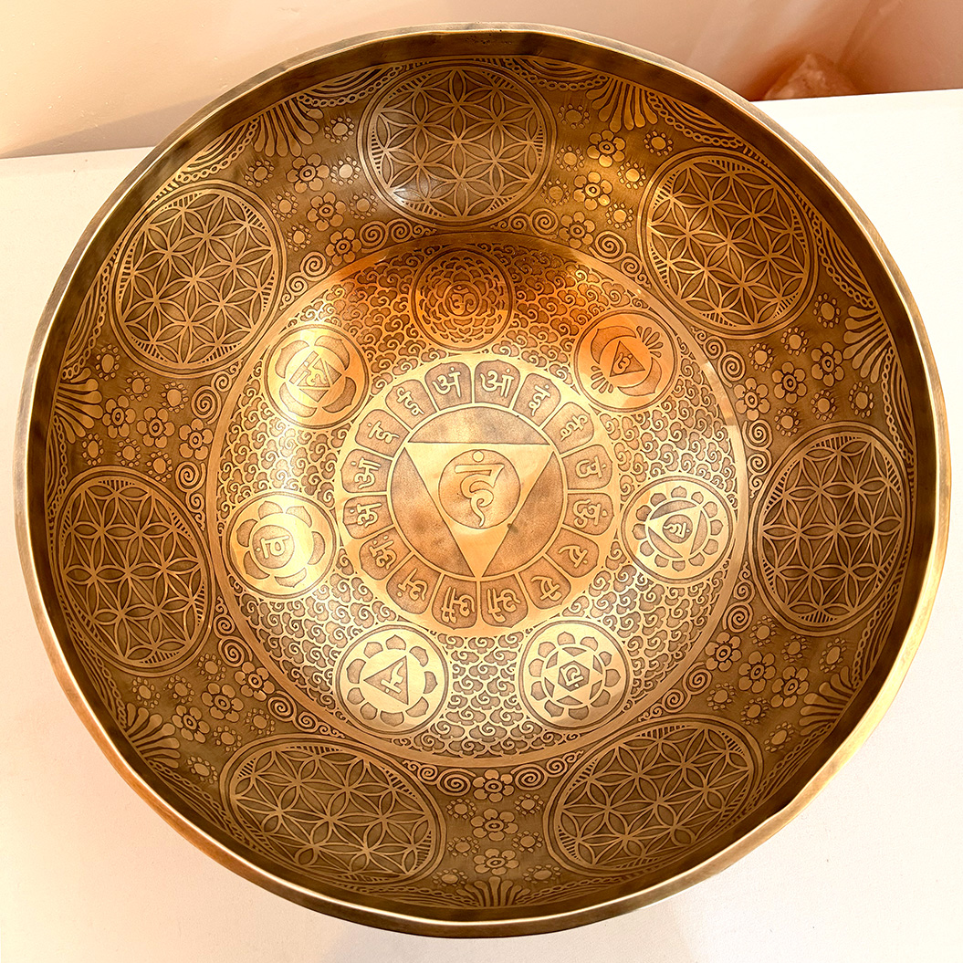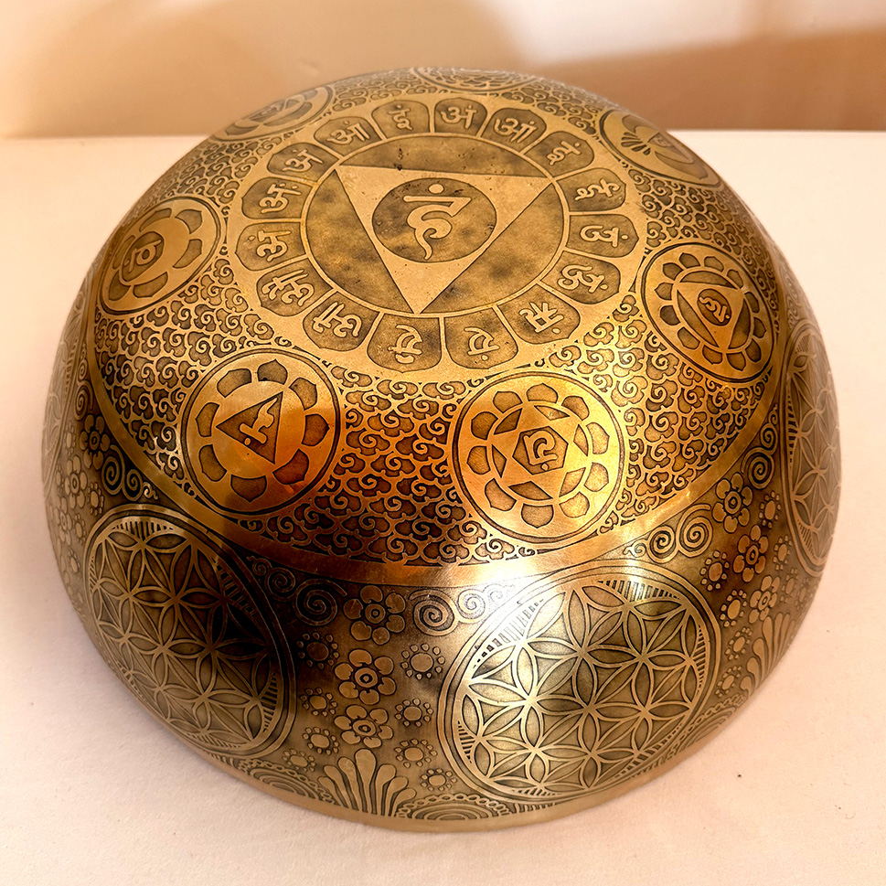 Large Etched Bowl with Seven Chakra Symbols Hindu – 40cm
