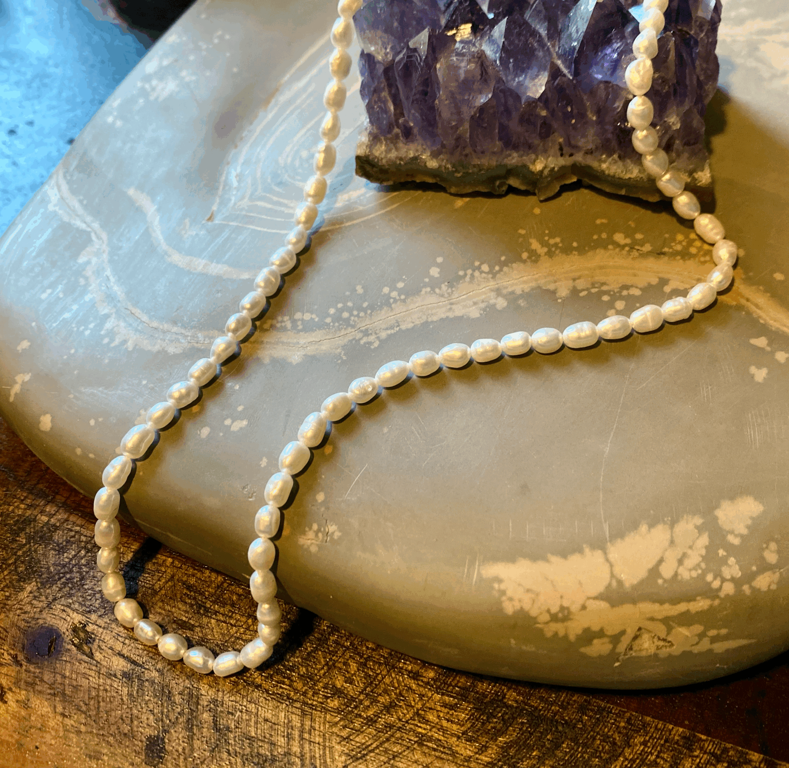 Celebrate the beauty of nature and the elegance of pearls with this stunning Rice Pearl Necklace—a perfect gift for yourself or a loved one.