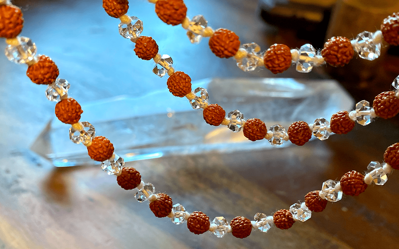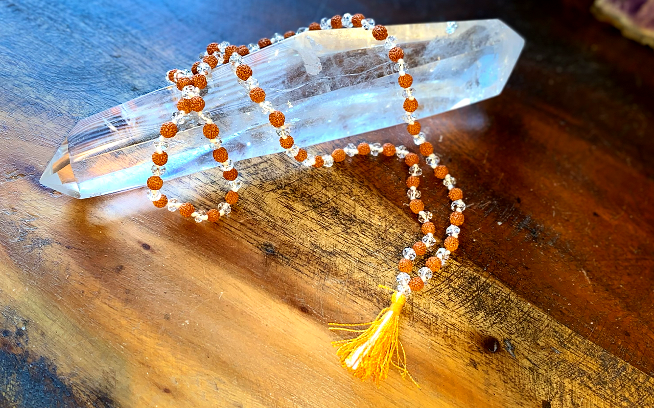 🌿 Rudraksha & Clear Quartz Small Mala Beads 🌟